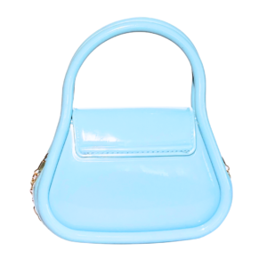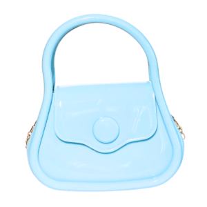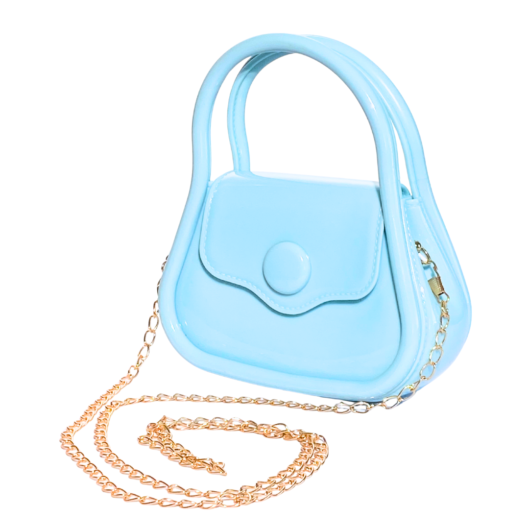 PVC handbag metal golden chain 6.5″ wide 2.7″ deep 4.5 ” length bag area 7.5″ length with handles