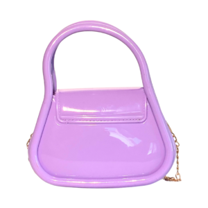 PVC handbag metal golden chain 6.5″ wide 2.7″ deep 4.5 ” length bag area 7.5″ length with handles
