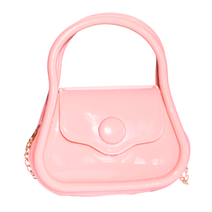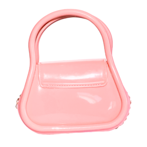 PVC handbag metal golden chain 6.5″ wide 2.7″ deep 4.5 ” length bag area 7.5″ length with handles
