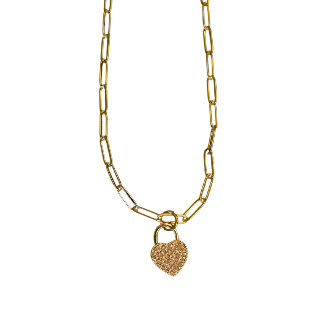 Be the first to review “Enduring heart gold charm and gold paper clip chain necklace”