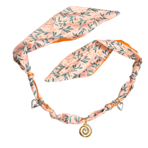 Eternal Whirl silk scarf necklace – peach and orange leaf print