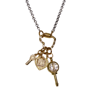 Love’s Key gold charms and silver rolo chain necklace