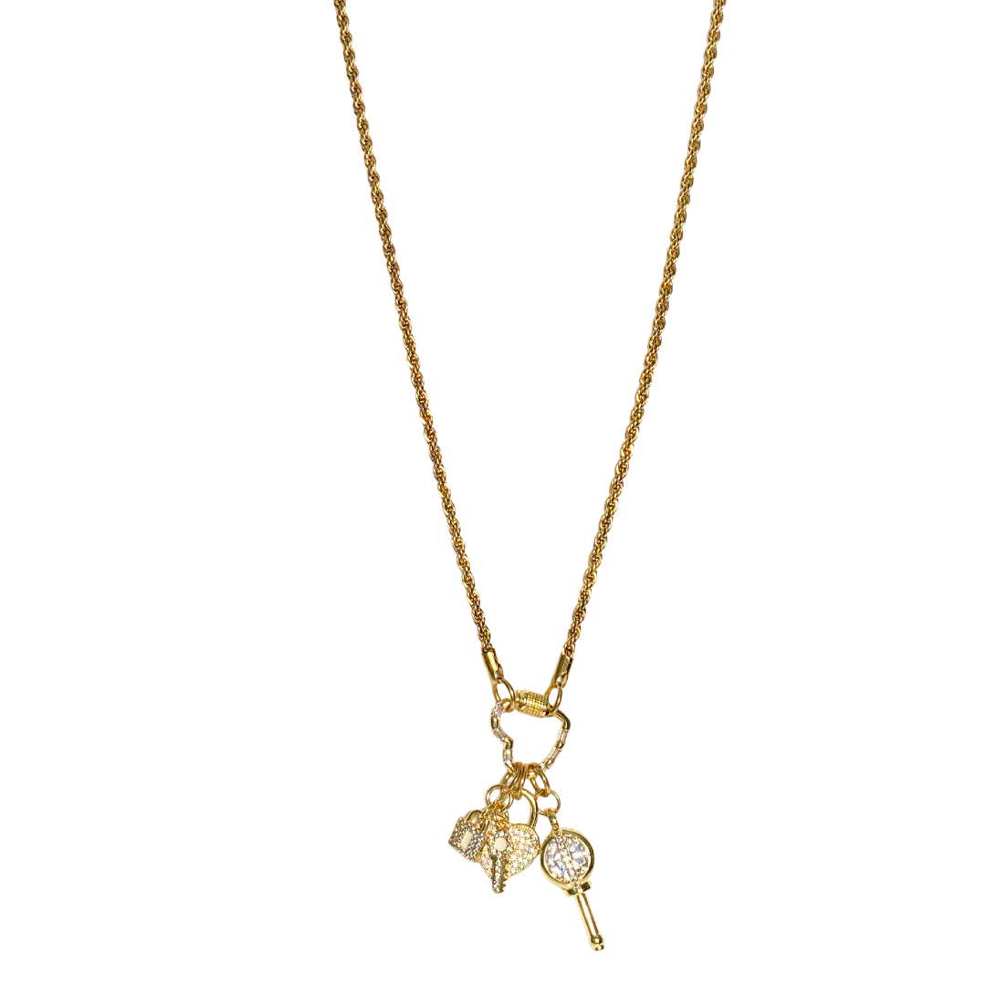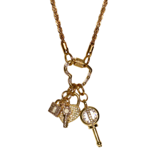 Love’s Key symbolizes trust and the invitation to open your heart fully. Stainless steel 18k gold plated 24″ necklace length 2″ charm set with lock length