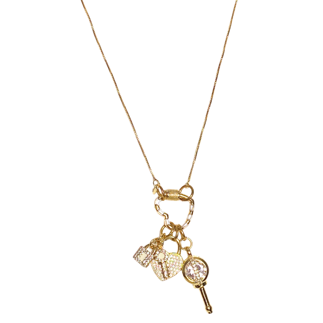 Love’s Key symbolizes trust and the invitation to open your heart fully. Stainless steel 18k gold plated 19.5″ necklace length 2″ charm set with lock length