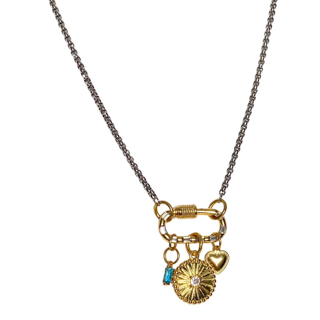 Sweetheart charm gold charms and silver box chain necklace